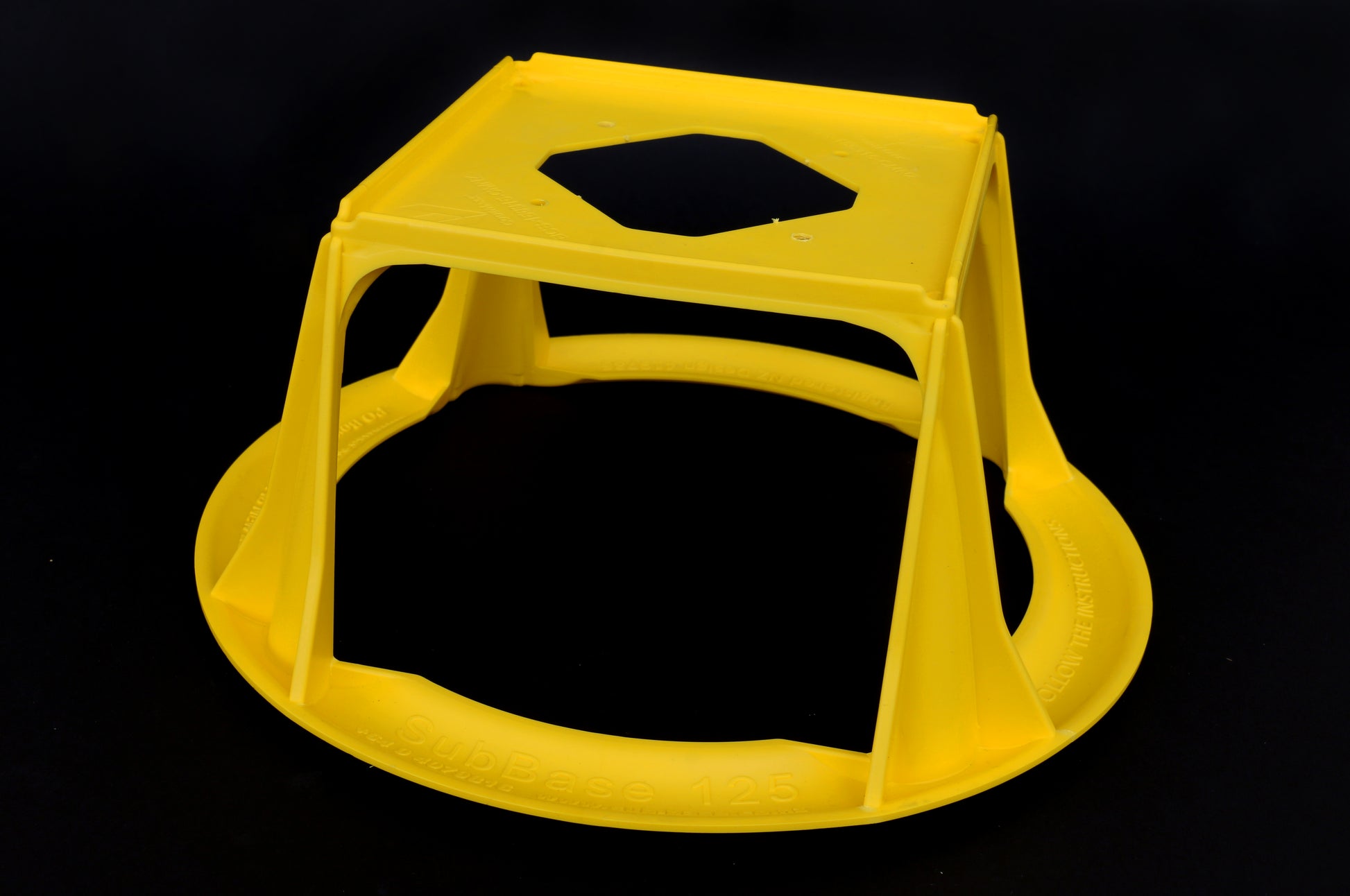 Made from bright plastic, SubBase125 are low cost, extremely strong, lightweight and stackable. Each SubBase100 can support over 400kg so piles can be cut to length and bearers fixed in place before the concrete is poured.